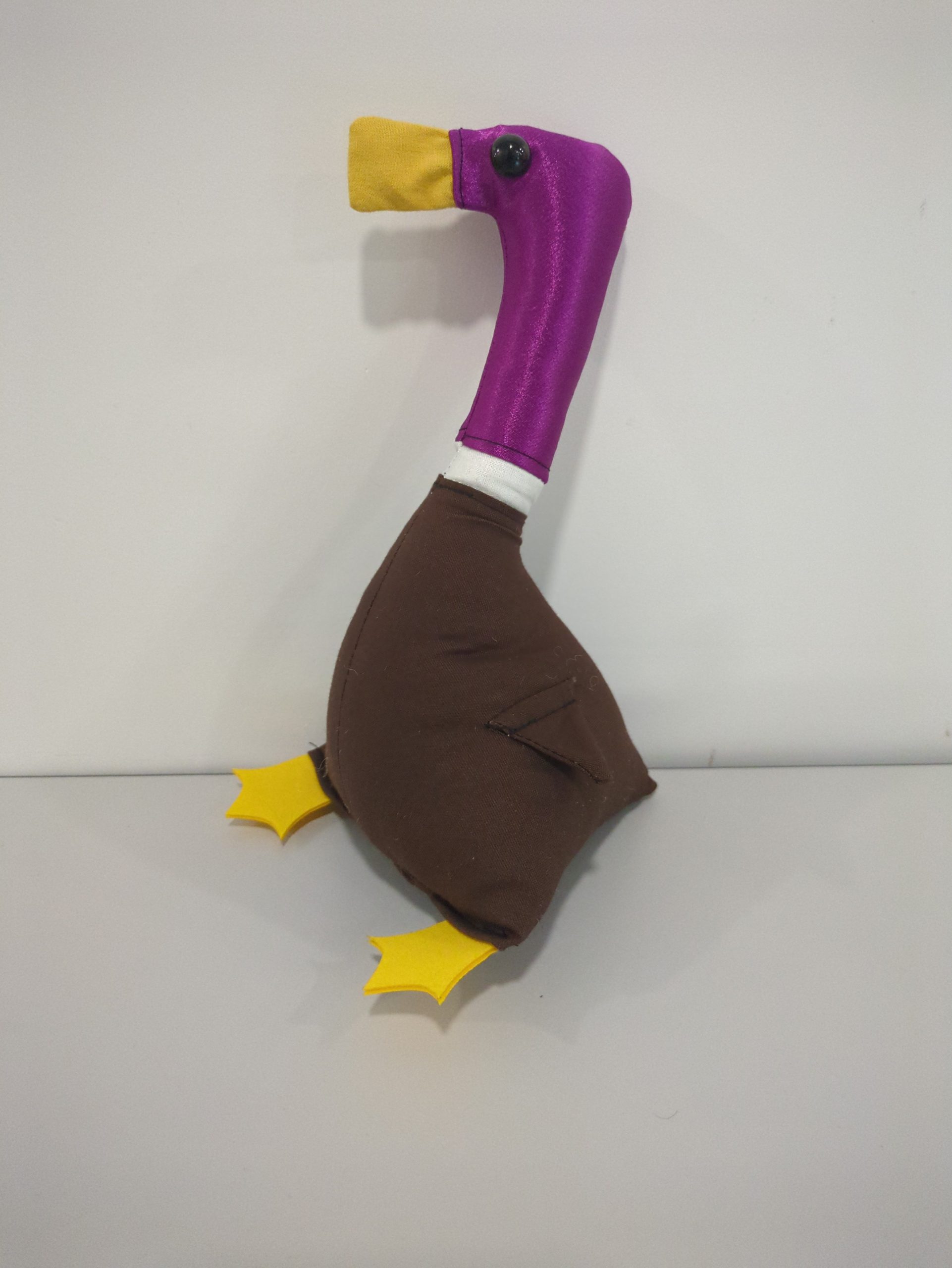 this little duck has a built in squeaker and many different textures of fabrics too add to his uniqueness.